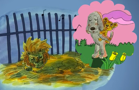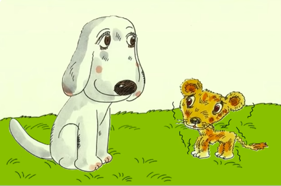 母親をなくした赤ちゃんライオンのブルブルは、子供をなくした犬のムクムクに育てられます。